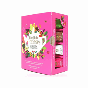 Green Tea & Pomegranate - Organic Green Tea with Pomegranate and Rose Petals., Ingredients: Organic green tea*(91%), natural pomegranate flavour (5%), organic pomegranate (3%), organic rose petals (1%)., Rooibos, Cocoa & Vanilla, Ingredients: Organic rooibos (72.5%), organic cocoa nibs (22%), natural vanilla flavour (3%), natural cocoa flavour(2%), organic vanilla pods (0.5%)., White Tea - Organic White Tea, Ingredients: Organic White tea(100%)., Super Berries - Organic Hibiscus Herbal Tea with Rooibos, Strawberries, Blueberries and Raspberries., Ingredients: Organic hibiscus (63%), organic rooibos (19%), organic sweet blackberry leaves (6%), organic spearmint (4%), natural strawberry flavour (3%), natural raspberry flavour (2%), organic raspberries (1%), organic strawberries (1%), organic blueberries (1%)., Earl Grey - Organic Black Tea with Bergamot, Ingredients: Organic Ceylon black tea*(97%), organic bergamot flavour (3%)., Jasmine Green Tea - Organic Green Tea with Jasmine and Elderflower., Ingredients: Organic green tea (94%), organic jasmine flowers (2.5%), natural jasmine flavour (2%), organic elderflower (1.5%)., English Breakfast -, Organic Ceylon Black Tea. Ingredients: Organic pure Ceylon black tea*(100%)., * Traded in compliance with Fairtrade Standards., Lemon Black Tea -, Organic Black Tea with Lemongrass & Lemon. Ingredients: Organic black tea (74%), organic lemongrass (18%), organic lemon peels (5%), organic lemon flavour (3%)., White Tea Coconut & Passion Fruit, Ingredients: Organic white tea (62%), organic lemongrass (16%), organic cocoa (12%), natural coconut flavour (2.75%), natural passion fruit flavour (2.25%), organic ginger (2%), organic coconut (2%), organic passion fruit flower (1%)., Perfect peppermint -, Organic Peppermint and Spearmint Herbal Tea. Ingredients: Organic peppermint* (70%), organic spearmint* (30%)., Lemongrass, Citrus & Ginger -, Organic Herbal Tea with Lemongrass, Citrus and Ginger. Ingredients: Organic lemongrass (47%), organic orange peel (24%), organic ginger (24%), organic lime flavour (2.5%), organic mandarin flavour (2.5%)., Sencha Green Tea - Organic Green Sencha., Ingredients: Organic sencha tea (100%)., , , , , , , ,