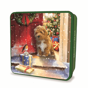 Grandma Wild's Embossed Cockapoo on a Doorstep Tin with Fruit & Lemon Biscuits and Clotted Cream Shortbread Biscuits 200g