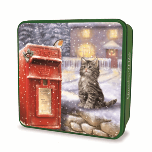 Grandma Wild's Embossed Kitten & Post Box Tin with Stem Ginger & Lemon Biscuits and Chocolate Chip Biscuits 200g