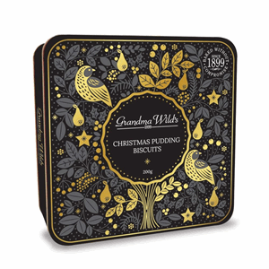 Grandma Wild's Embossed Partridge in a Pear Tree Tin with Christmas Pudding Biscuits200g
