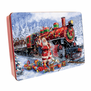 Grandma Wild's Embossed Santa Train with Toys Tin with Stem Ginger & Lemon and Clotted Cream Chocolate Chip Shortbread Biscuits 400g