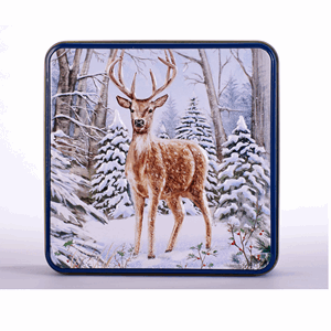 Grandma Wild's Embossed Stag In Snowy Wood Tin with Stem Ginger Biscuits & Clotted Cream & Choc Chip Shortbread Biscuits 160g