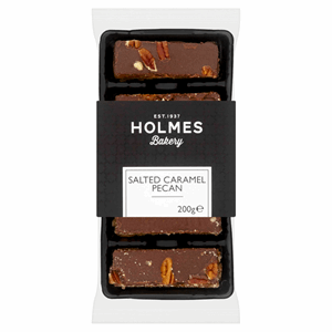 Butter (15%): Cream (Milk), Salt, Skimmed Milk Powder, Water, Margarine (14%): Vegetable Oil (Palm, Rapeseed), Water, Salt (1.1%), Emulsifier (Mono and Diglycerides of Fatty Acids), Flavouring, Vitamins A + D, Colour (Carotenes), Dark Chocolate Topping (13%): Sugar, Palm Oil, Fat Reduced Cocoa Powder, Fortified Wheat Flour (Wheat Flour, Calcium Carbonate, Iron, Niacin, Thiamine), Whey Powder (Milk), Emulsifier: Soya Lecithin, E476; Natural Flavouring, Sweetened Condensed Milk (13%): Milk (56%) (Milk), Granulated Sugar (44%), Lactose Trace, Plain Flour (12%): Wheat Flour (Wheat Flour, Calcium Carbonate, Iron, Niacin, Thiamin), Caster Sugar (8%), Icing Sugar (6%), Cornflour (6%): Maize Starch, Golden Syrup (5%): Partially Inverted Refiners Syrup, Double Cream (4%): (Milk), Pecan Nuts (4%), Coarse Sea Salt, , ,