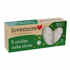 Sugar, Rice Flour, Sultanas (13%), Rapeseed Oil, Egg, Almonds, Water, Glaze [Glucose Syrup, Water, Sugar, Gelling Agent (Pectin), Citric Acid, Thickeners (Gellan Gum, Xanthan Gum), Preservative (Potassium Sorbate)], Marzipan [ Sugar, Almonds (Nut), Glucose Syrup, Water, Invert Sugar Syrup, Humectant (Sorbitol), Preservative (Potassium Sorbate)], Glace Cherries (5%) [Cherries, Glucose-Fructose Syrup, Sugar, Fruit and Plant Concentrates [Carrot, Morello Cherry, Sweet Potato, Radish, Apple], Acidity Regulator ( Citric Acid)], Humectant (Glycerol), Emulsifiers, Mixed Peel [ Orange Peel, Glucose Fructose Syrup, Lemon Peel, Sugar, Preservative ( Potassium Sorbate), Acidity Regulator ( Citric Acid)], Preservative ( Potassium Sorbate), Icing Dusting, Mixed Spice, Stabiliser (Xanthan Gum), Acidity Regulator ( Citric Acid), Flavouring, Orange Oil, Jamaican Rum