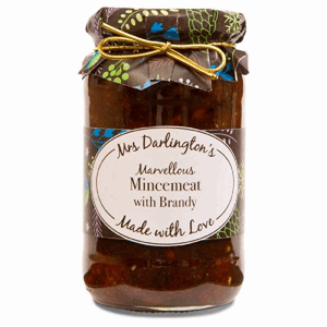 Brown Sugar, Bramley Apples, Sultanas, Raisins, Currants, Orange Marmalade (Sugar, Seville Oranges, Orange Juice, Orange Oil, Gelling Agent: Pectin), Veg Suet (Non-Hydrogenated Vegetable (Pam & Sunflower) Oil), Rice Flour), Citrus Peel, Brandy (2%), Lemon Juice, Spices, Nutmeg, Salt, Acetic Acid.