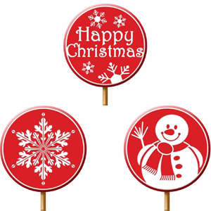 Santa: Sugar, glucose syrup, water, malic acid, natural flavouring, natural colours:anthocyanin and titanium dioxide Penguin: Sugar, glucose syrup, water, malic acid, natural flavouring, natural colours:carbon black and titanium dioxide Snowflake: Sugar, glucose syrup, water, malic acid, natural flavouring, natural colours, anthocyanin and titanium dioxide Gingerbread man: Sugar glucose syrup, water, malic acid, natural flavouring, natural colours: carameland titanium dioxide