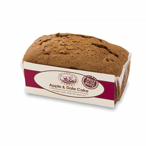 Dates (24%), wheat flour, sugar, vegetable margarine (palm oil, rapeseed oil, salt, water), dried apple (0.2%), vegetable glycerin, apple juice from concentrate, raising agent (sodium bicarbonate), rapeseed oil, preservative (potassium sorbate), glaze (sugar, water, glucose, syrup, gelling agent (pectin), citric acid, acidity regulator (sodium citrates))