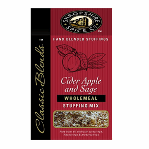 wholemeal breadcrumbs, (whole wheat flour, salt, yeast), wholemeal rusk (whole wheat flour, salt, yeast) cider apple, onion flake, candied lemon peel (lemon peel, glucose syrup, salt, citric acid), english sage, yeast powder, onion salt.