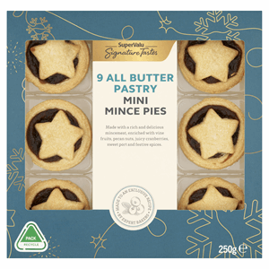 Mincemeat (51%) [Sugar, Apple Purée, Currants (18%), Sultanas (9%), Rapeseed Oil, Sweetened Dried Cranberries (4%) (Sugar, Cranberries, Sunflower Oil), Orange Peel, Glucose Fructose Syrup, PECAN NUTS (1%), Maize Starch, Mixed Spice, Port (0.5%), Acid (Acetic Acid), Lemon Peel, Acidity Regulator (Citric Acid)], Pastry (49%) [Wheat Flour [WHEAT Flour, Calcium Carbonate, Iron, Niacin (B3), Thiamin (B1)), Salted Butter (26%) (Butter (MILK), Salt), Sugar]