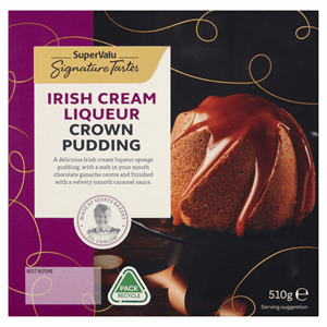 Wheat Flour [WHEAT Flour, Calcium Carbonate, Iron, Niacin (B3), Thiamin (B1)], Free Range EGG (14%), Sugar, Caramel Sauce (12%) [Glucose Syrup, Sugar, Skimmed MILK Powder, Whey Powder (MILK), Butter (MILK), Palm Fat, Caramelised Sugar, Salt, Emulsifier (Sunflower Lecithin), Preservative (Potassium Sorbate), Flavouring], Chocolate Ganache Centre (10%) [Cream (MILK), Sugar, Cocoa Mass, Glucose Syrup, Cocoa Butter, Irish Butter (MILK), Emulsifier (SOYA Lecithin), Flavouring], Rapeseed Oil, Irish Cream Liqueur (6%) (MILK), Irish Butter (4.5%) (MILK), Glycerine, Invert Sugar Syrup, Modified Starch, Raising Agents (Diphosphates, Potassium Carbonates, Sodium Carbonates), Starch (contains WHEAT), Emulsifiers (Mono- and Diglycerides of Fatty Acids, Propane-1,2-Diol Esters of Fatty Acids, Sodium Stearoyl-2-Lactylate, Polyglycerol Esters of Fatty Acids), Preservative (Potassium Sorbate), Dextrose, Stabiliser (Xanthan Gum), Flavouring, WHEAT Gluten, Yeast, Acidity Regulators (Citric Acid, Potassium Hydroxide), Salt