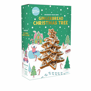 Gingerbread Pieces (Wheat Flour, Invert Sugar Syrup: Glucose-Fructose Syrup, Glucose, Sugar; Rye Flour, Sugar, Vegetable Fat: Palm; Raising Agents: Sodium Carbonates, Ammonium Carbonates, Diphosphates; Sugar Powder, Apple Jam: Apple Puree, Sugar, Preservative (Sodium Benzoate); Spice Mixture: Cinnamon, Coriander, Cocoa Powder, Cloves, Ginger, Black Pepper, Cardamom, Allspice; Preservative: Potassium Sorbate; Salt, Acidity Regulator: Lactic Acid; Baking Improver: Emulsifiers (E481, E472e), Enzymatic Protein (Amylase And Lipase) Normalized by Flour (Wheat) and Starch (Corn and Wheat) Anti-Caking Agents: Calcium Carbonate, Calcium Phosphates, Silicone Dioxide), Sugar Powder, Sugar Sprinkles (Sugar, Rice Flour, Palm Oil, Corn Starch, Thickener: E466; Glucose Syrup, Glazing Agents: Gum Arabic, Talc; Flavouring, Colour: Brilliant Blue)