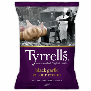 Potatoes, sunflower oil, whey powder (MILK), sea salt, sugar, onion powder, dried sour cream (MILK), garlic powder, whole MILK powder, dried yoghurt (MILK), yeast extract, acidity regulators (lactic acid, calcium lactate, citric acid), natural flavourings, black garlic powder, natural garlic flavouring with other natural flavourings, liquorice extract.